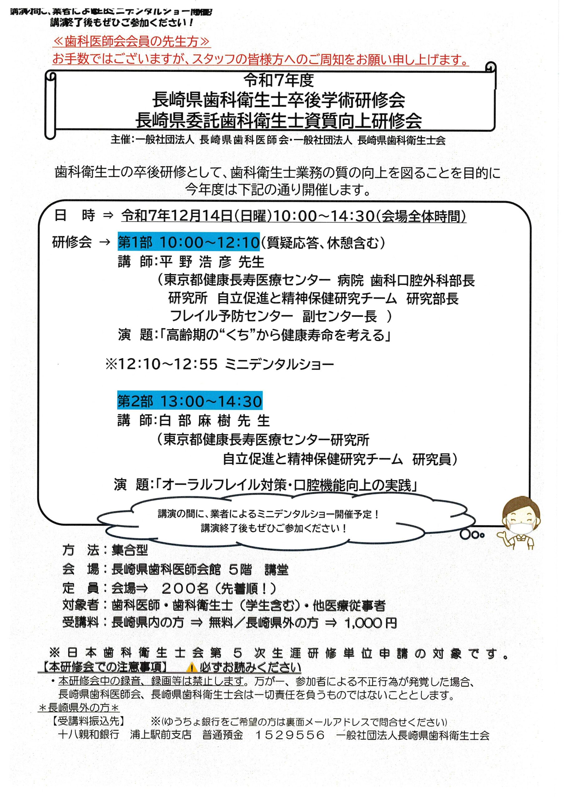受講料:長崎県内の方 無料/長崎県外の方 1,000 円