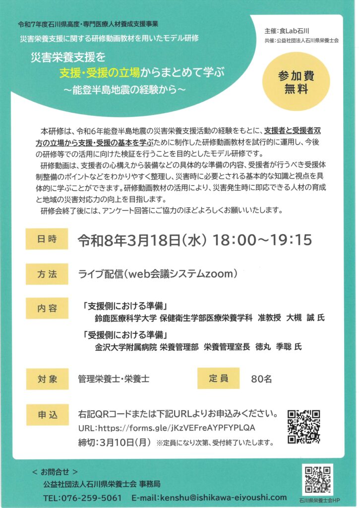 (令和7年度石川県高度・専門医療人材養成支援事業)